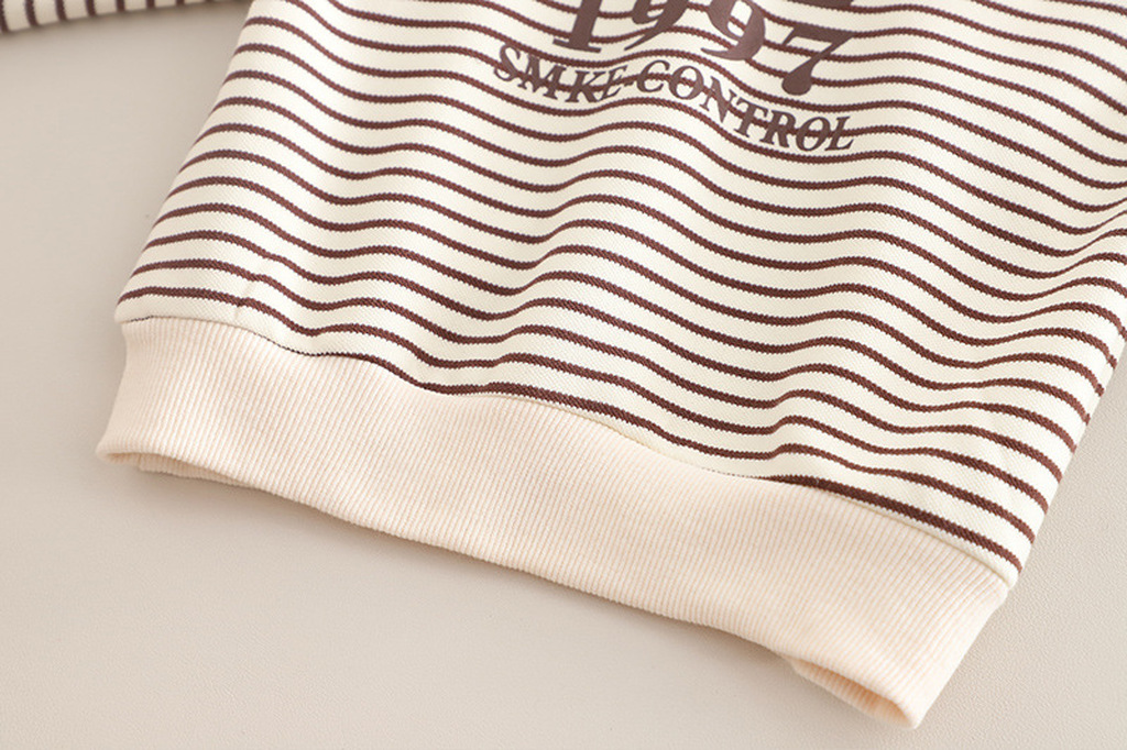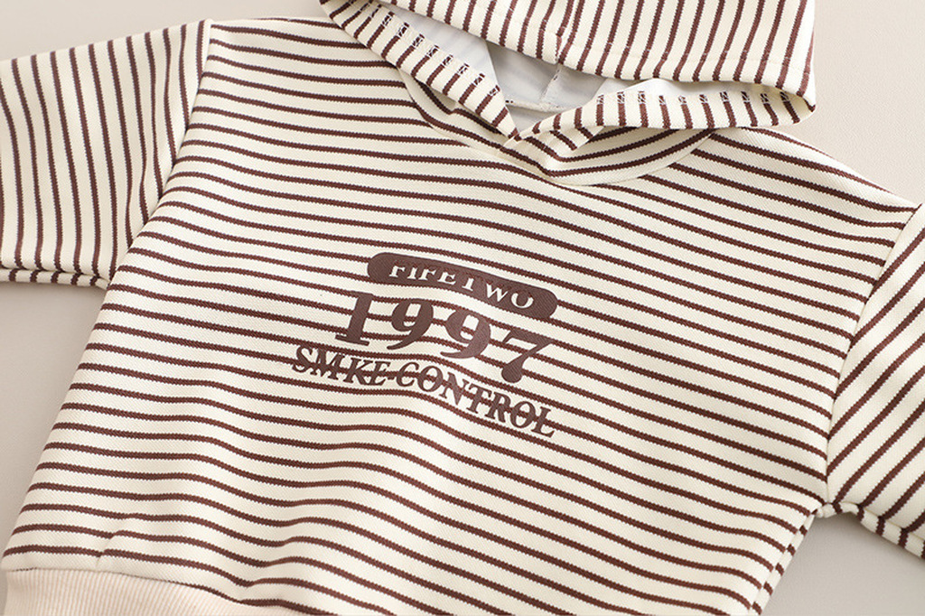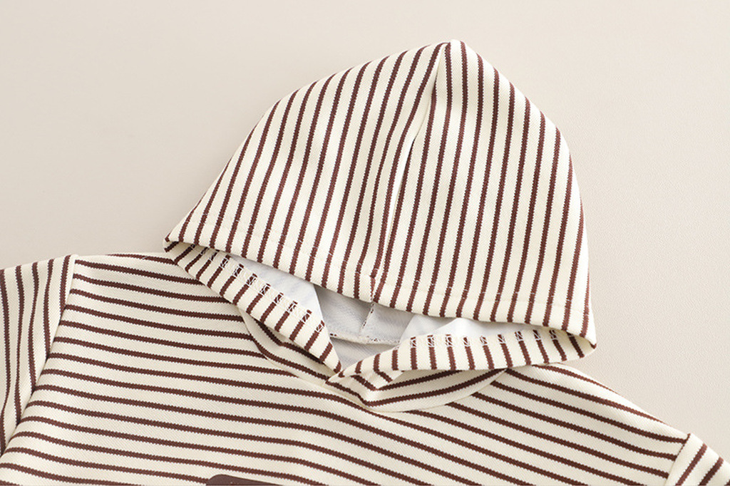 SETX3 BUSO CAPOTA BEIGE LINEAS CAFES CON APLIQUES CHAQUETA BEIGE OSCURO PANTALON CAFÉ OSCURO
